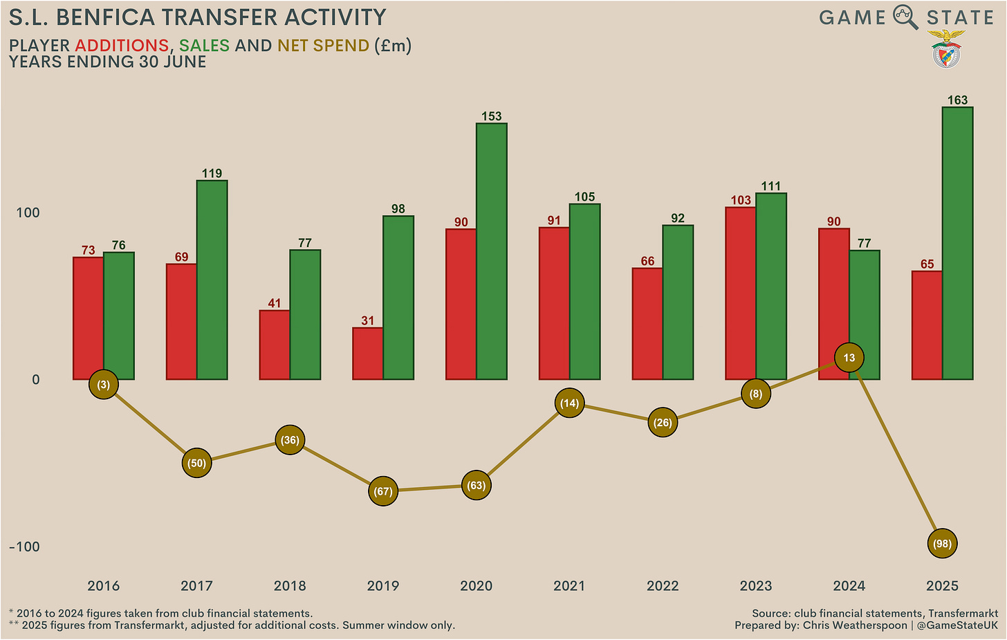 Lowly sales haven’t been a problem at Benfica for a long while, and this summer was little different. As Águias recouped over €160 million on outgoing players, commanding €60 million from PSG for João Neves and a further €40 million from Al-Hilal for young striker Marcos Leonardo.