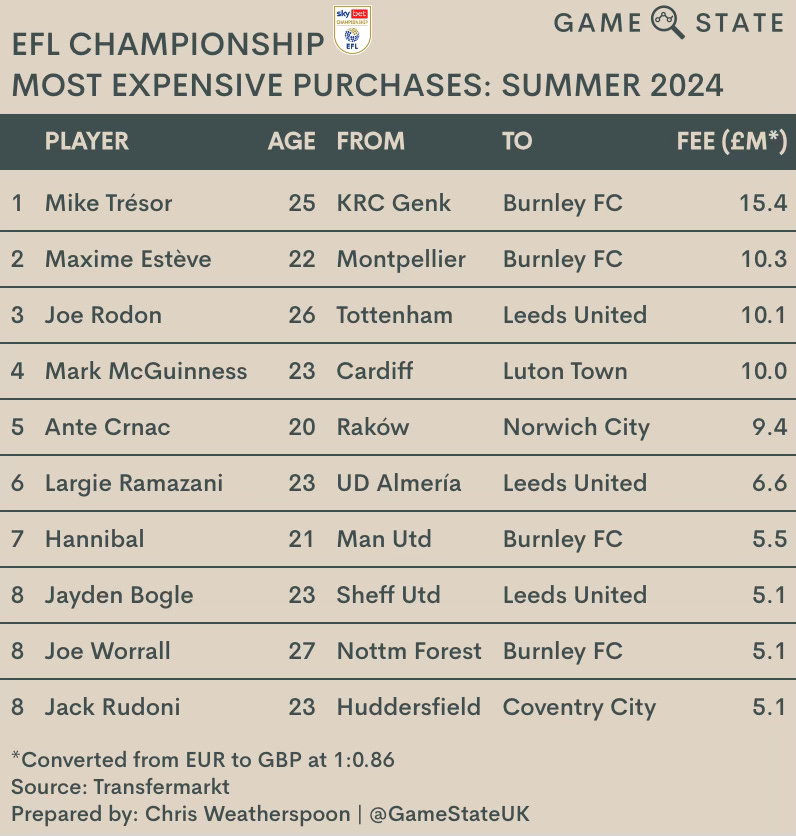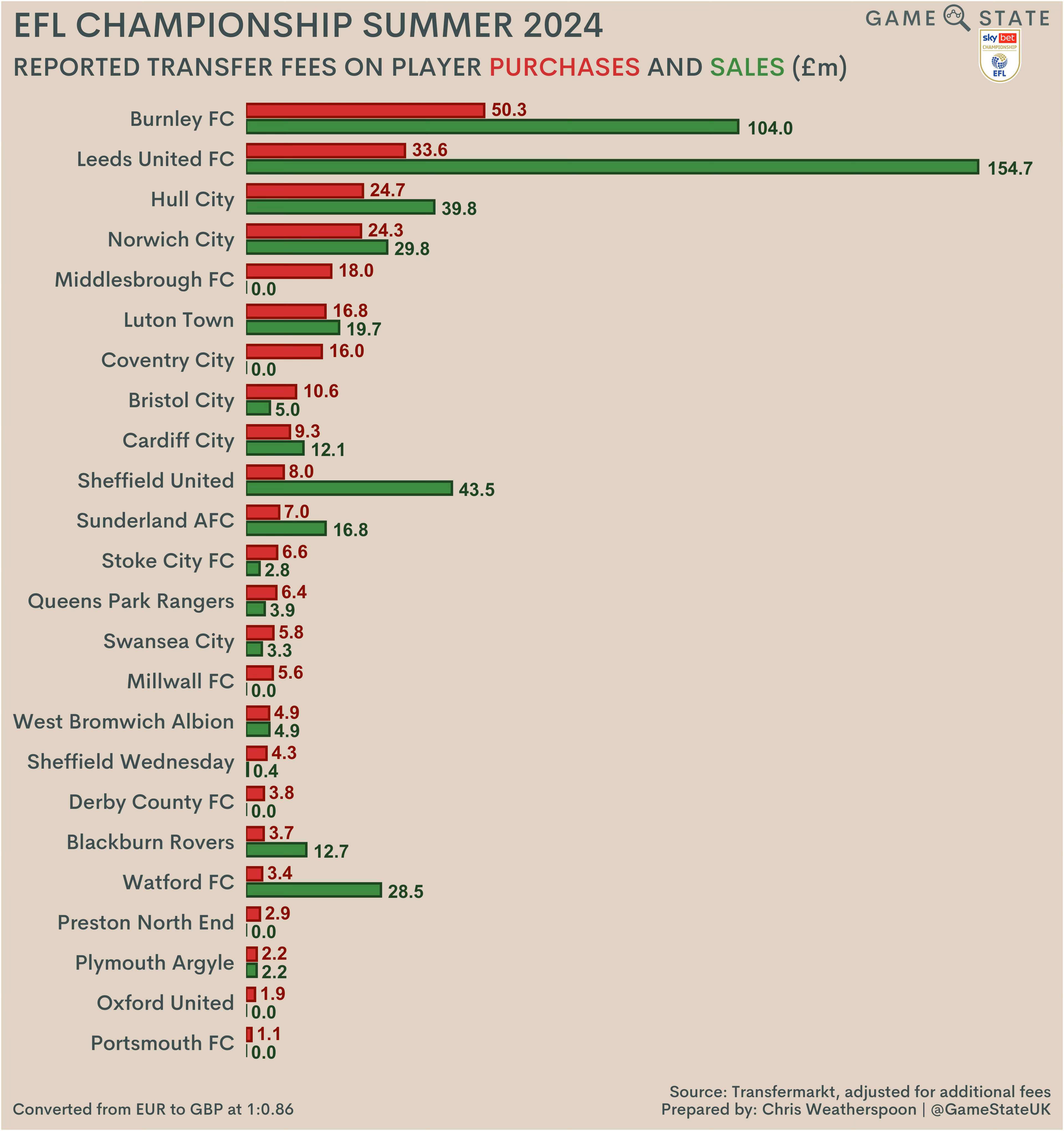 (Note: all figures in the EFL Championship section below are shown in GBP)