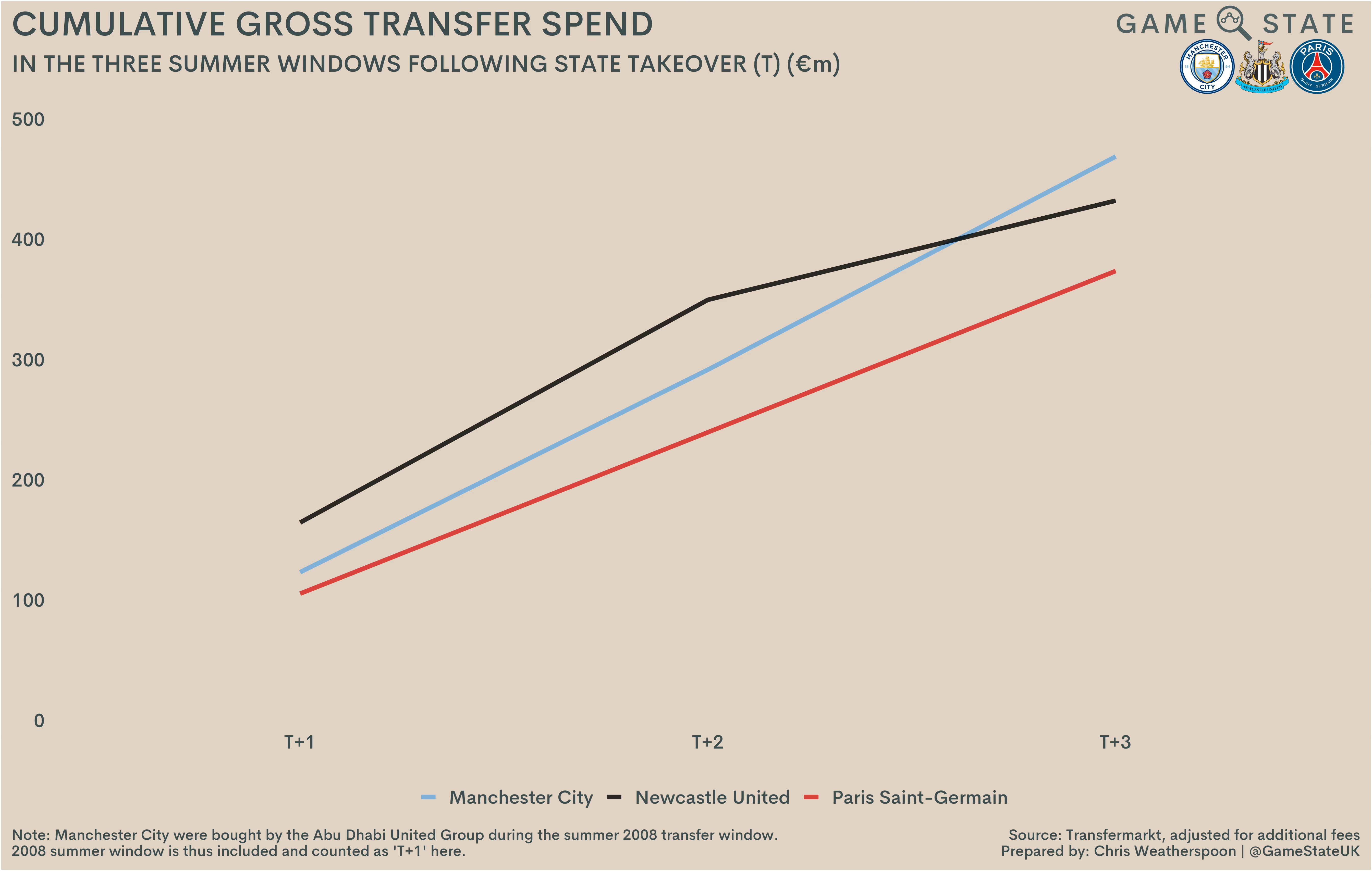 Newcastle, like Manchester City, are a rare breed, being one of only three clubs in Europe’s main leagues - the other being Ligue 1’s Paris Saint-Germain - to be owned by a (Middle Eastern) state. This was Newcastle’s third summer window since being taken over by the Public Investment Fund of Saudi Arabia (PIF), and a look at their activity in this window against City and PSG’s at the same time following their takeovers is instructive.