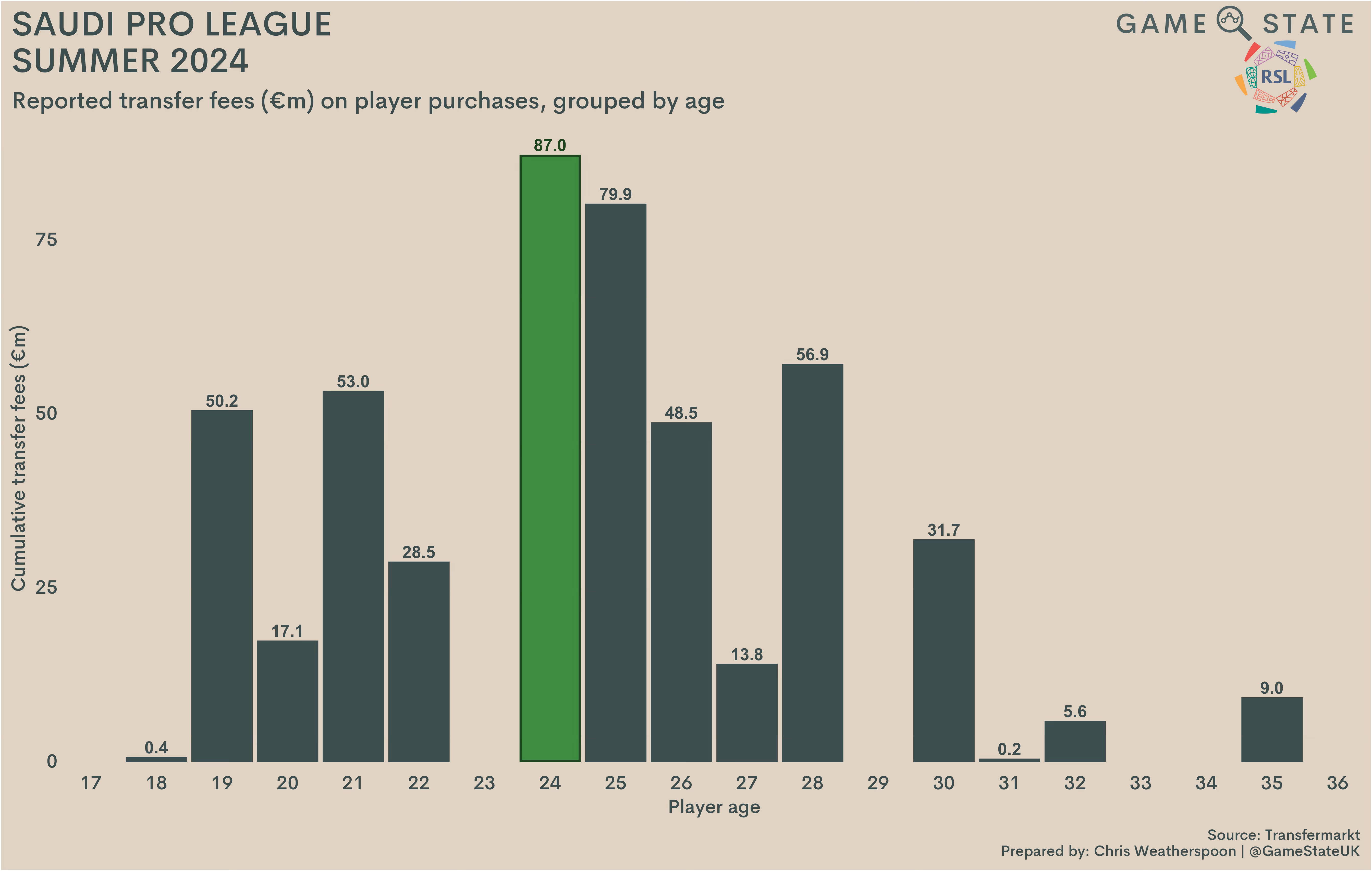 While there was an evident slowdown in overall spending by Saudi clubs this summer, one notable underlying shift - and one which perhaps counters the idea of waning interest from the powers-that-be - was the age of the players on which money was spent.