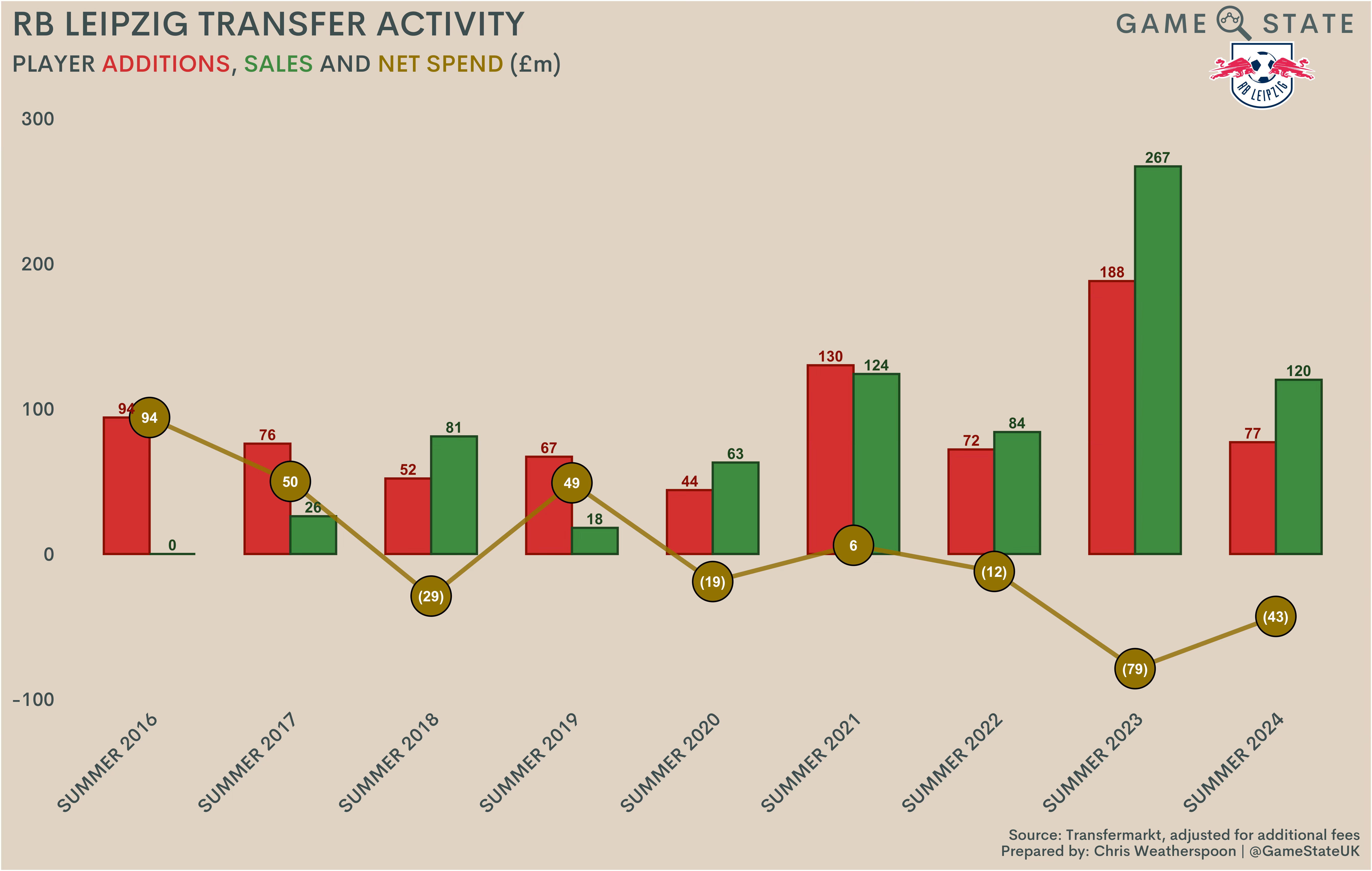 In all, Leipzig have banked nearly €600 million in player sales in just the last four summers. This year, the sales of Dani Olmo (FC Barcelona) and Mohamed Simakan (Al-Nassr) were German football’s highest and third-highest departing fees, only separated by Bayern’s sale of Matthijs de Ligt to Manchester United.