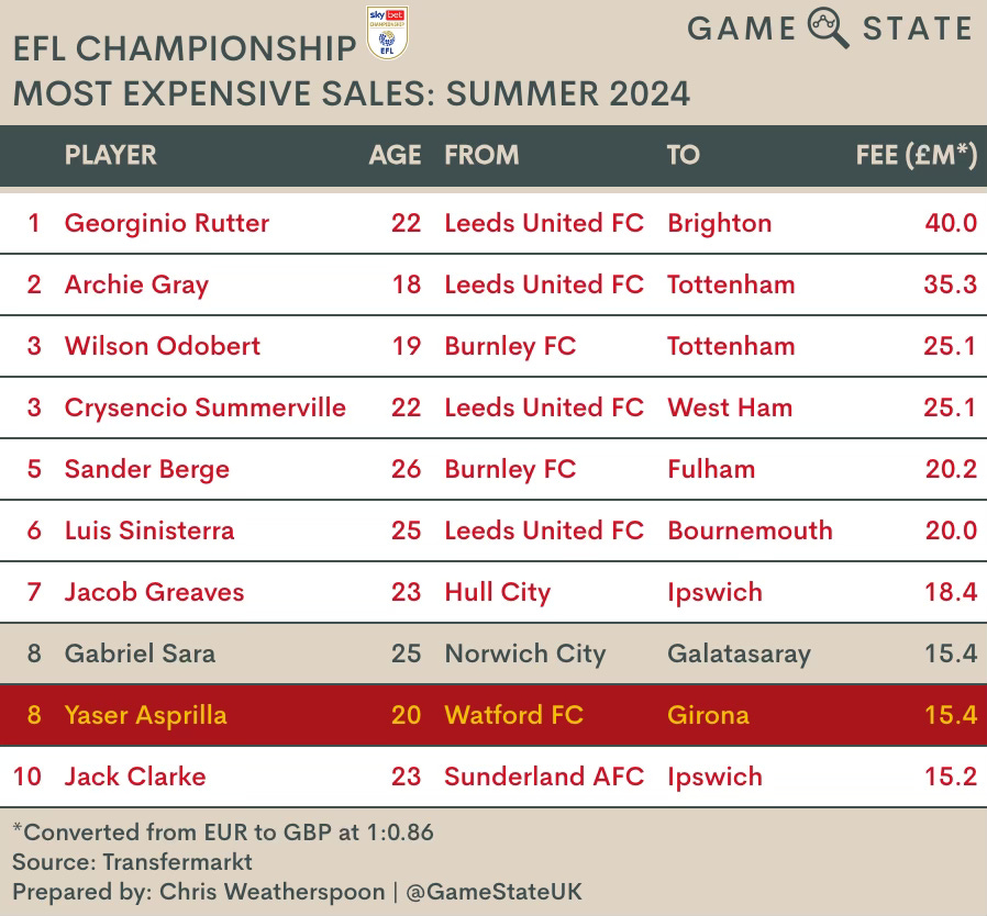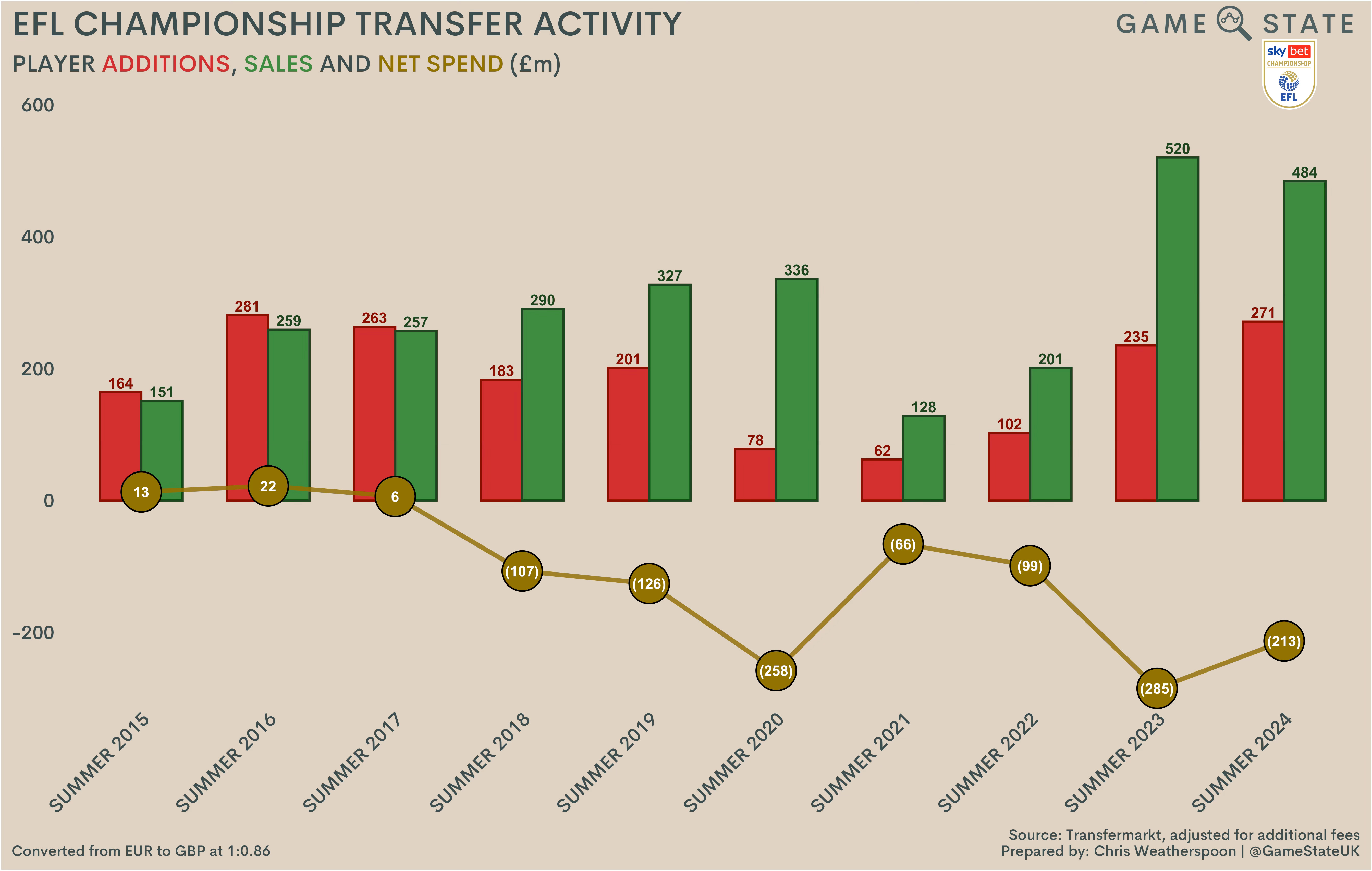 Cementing its reputation as one of the best-selling leagues in world football, Chammpionship clubs banked over €500 million in player sales for the second summer running (and nearly more than £500 million each time too).