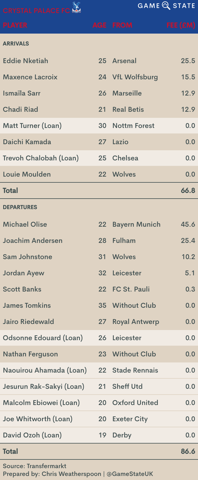 For the most part, the figures you’ll find here can be found on the website Transfermarkt, it being the resource that most comprehensively covers player trading. Where possible, and particularly where English clubs are concerned, we have used figures from club financial statements for past seasons. However, where comparisons are made only to past summer transfer windows, we’ve necessarily used Transfermarkt figures in order to ensure we exclude any winter dealings.