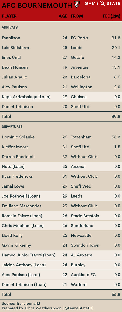 Game State has, below, produced three galleries showcasing the full summer 2024 transfer dealings of each of the 20 EPL clubs:
